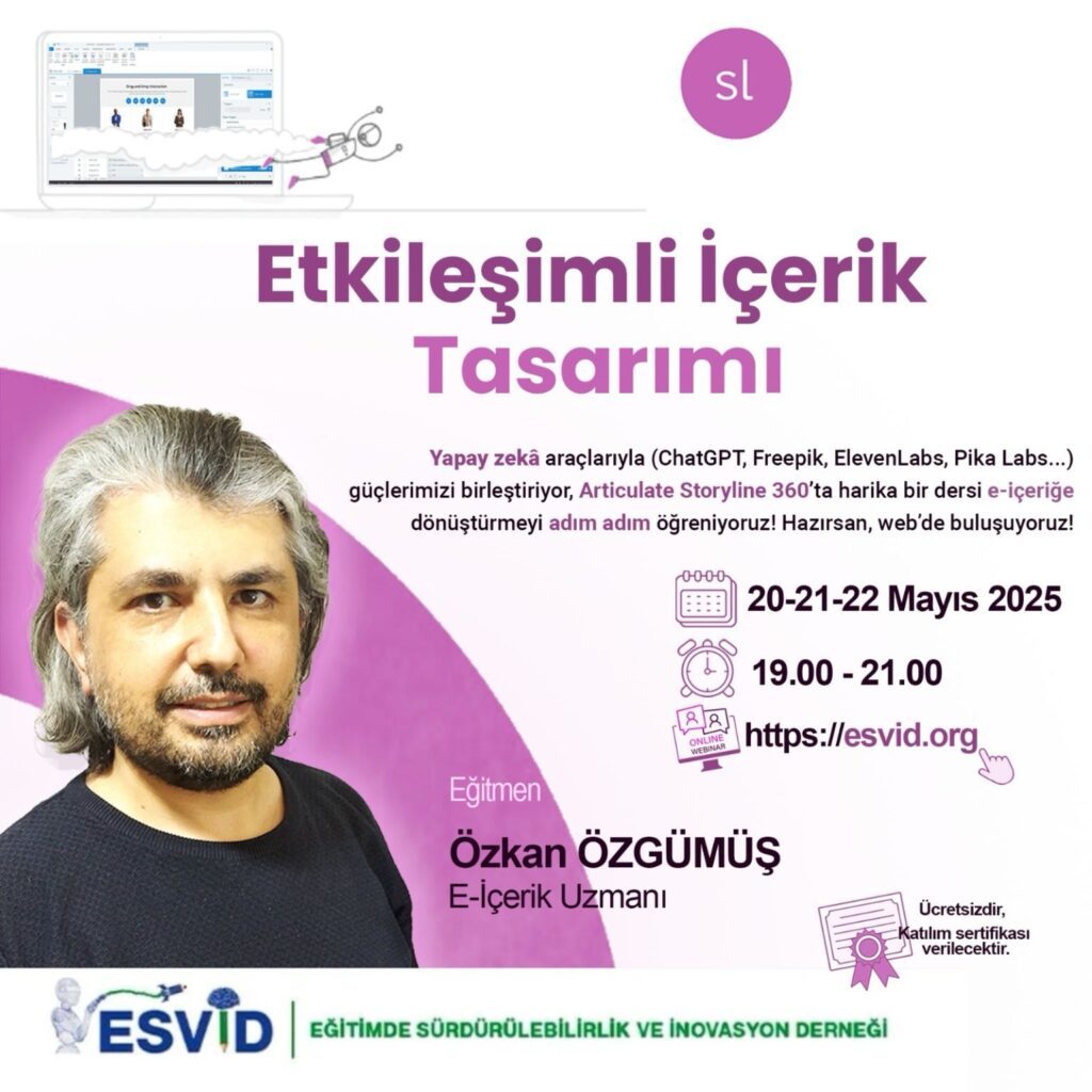 Bu eğitim, Eğitimde Sürdürülebilirlik ve İnovasyon Derneği (ESVID)’in, eğitimde yenilikçiliği, dijital dönüşümü ve sürdürülebilir öğrenme modellerini destekleme vizyonu doğrultusunda düzenlenmektedir.